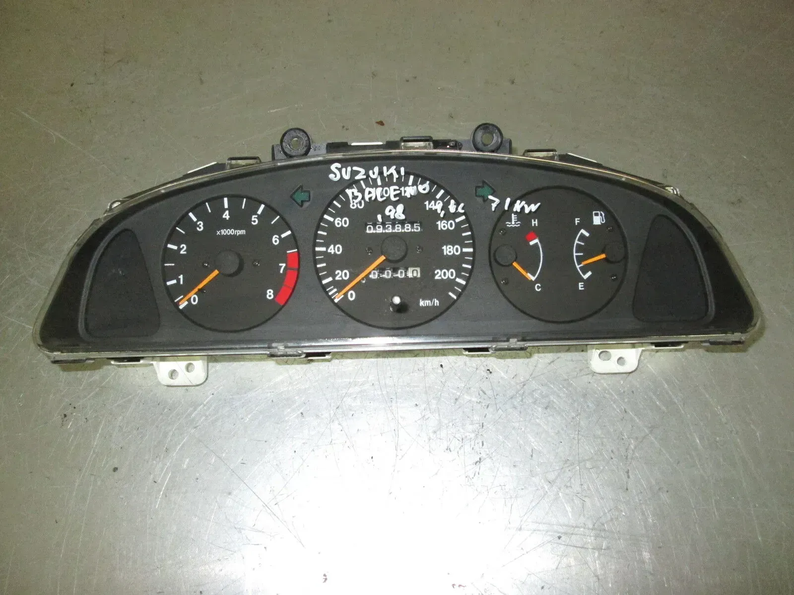 Suzuki Baleno Kombiinstrument Marke: Suzuki Typ: Baleno Baujahr: 1998 Leistung: 72KW Hubraum: 1.6l Laufleistung: 93.885km Kraftstoffart: Benzin Teilenummer: Bitte vor dem Kauf vergleichen! # 34100-64G # 34100-5GA # 157380-5530 Original Foto Interne Nummer: K.F.18947 Besuchen Sie unseren eBay Shop: Autoverwertung-Ellar Telefonische Auskunft nur während unseren