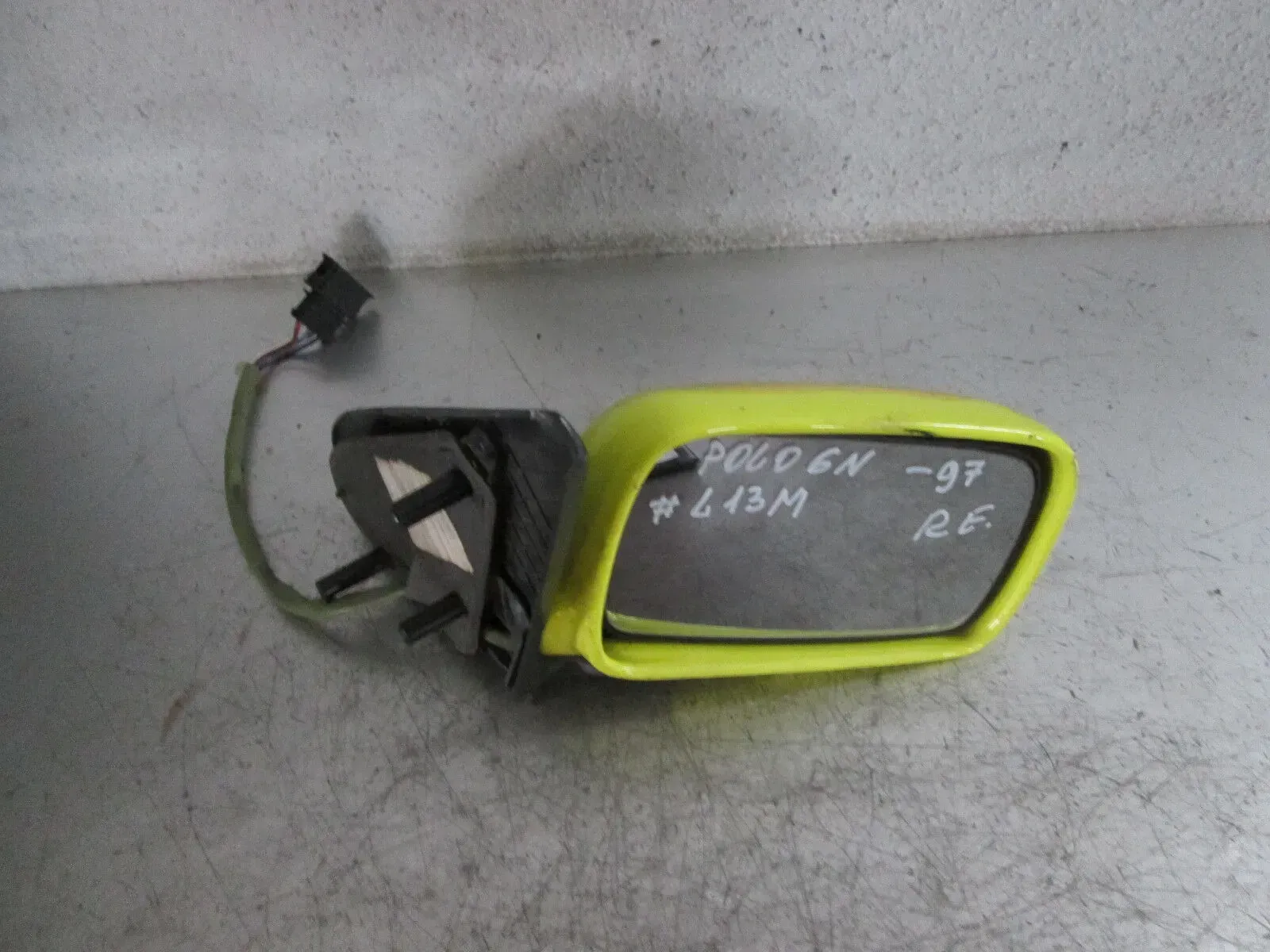 VW Polo 6N elektrischer Außenspiegel rechts Marke: VW Typ: Polo 6N Baujahr: 1997 Farbcode: L13M - Saturngelb Außenspiegel ist elektrisch verstellbar! Original Foto ! Interne Nummer: K.F.24186 Bitte klären Sie alle